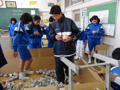 本日の総合的な学習の時間では,来る,1月27日に行われる半田養護学校との“ふれあい交流”の諸準備をしました。養護学校の生徒さんと一緒に,本校の生徒が用意した手作りのゲームコーナーで共に遊びながら交流をはかります。手作りの景品などは大変味があり,誰がもらってもうれしいようなものばかりでした。例えば,折り紙で作った動物など,大変愛らしいものばかりです。
