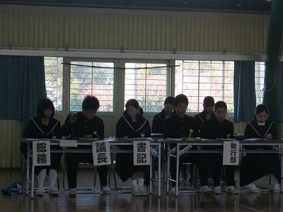 各委員会の委員長や生徒会執行部が,1年の反省をし,次年度へ向けての課題を話し合いました。