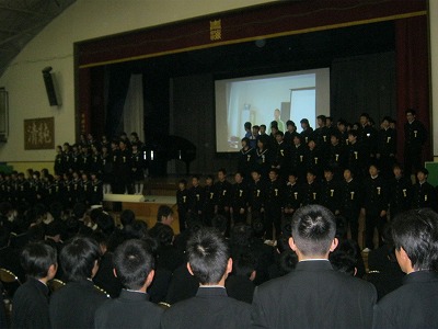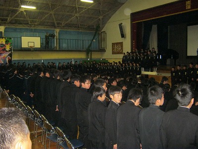 会の最後には、3年生を1,2年生が囲み、「ビリーブ」を歌ってくれました。それまでの楽しく盛り上がった雰囲気から一転、しみじみとした別れの雰囲気が流れました。1,2年生はこれまで、朝の活動の時間も使って一生懸命歌の練習に取り組んでくれました。後輩が一生懸命歌う姿を見て、多くの3年生が感動し、感謝の気持ちをもつことができました。8日の卒業式は、全校生徒で素晴らしい式にしてほしいです。