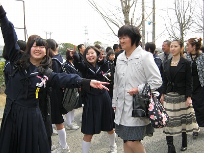 卒業式その3 公開日 2012/03/10 更新日 2012/03/10 3年生より 最後には、卒業生・保護者・3年職員が1列に並び、後輩から祝福されながら、正門を出ていきました。そのまま下校する生徒はほとんどおらず、生徒・保護者・職員が入り交じりながら、写真撮影が始まりました。涙の卒業式から一変、笑顔たくさんの写真を撮ることができました。 いいね(0)