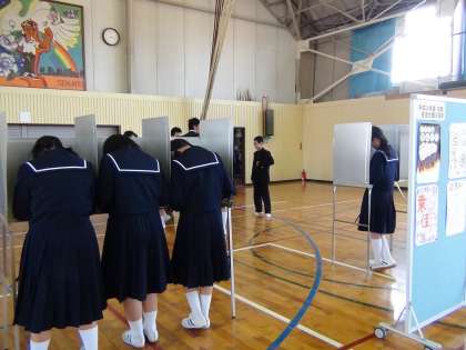 生徒会役員選挙に参加しました 公開日 2012/03/16 更新日 2012/03/16 1年生より 1年生にとって,2回目となる生徒会役員選挙に参加しました。立候補者の演説を聞き,みんなが青海中学校のために頑張りたいという気持ちをあらためて,確認しました。 その後,ぜひ,生徒会役員として頑張って欲しいという人を投票しました。緊張感のある選挙となりました。 いいね(0)