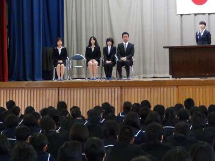2年生になって初めて登校した本日は,新任式が行われました。初めて本校にいらした先生とご対面しました。また,新しい学年の先生,部活動の先生の発表がありました。
