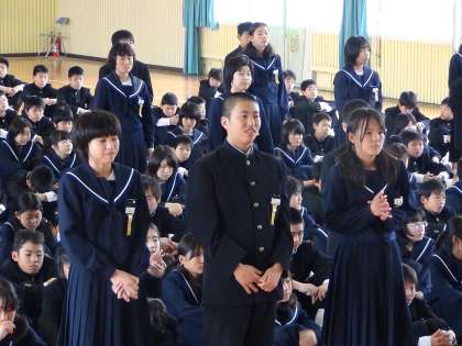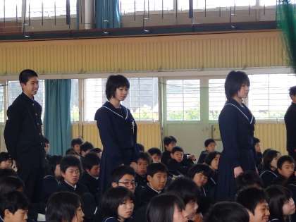 本日は,朝会が行われ,三役の任命状を校長先生から頂戴いたしました。2学年の代表は,A組の級長の山田智也君でした。みんな,呼名されると立派に返事をし,三役として,強い自覚をもっていることを感じました。これからの活躍が楽しみです。