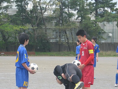 7チームによるリーグ戦(6試合)が始まりました。今回は苦しい試合が予想されました。ケガ人や病人も多く、試合に参加したのは9人でした。相手チームよりも2人少ない中での戦いでしたが、今まで以上に気合いも入って、全員で声もよく出ていました。人数が少ない分、1人1人がいつもよりもよく動いていました。いい試合でした。Aチームによる公式戦初勝利でした。疲れ切った表情の中にも、喜びを感じました。