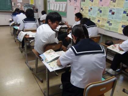 2年生は,家庭科の授業で調理実習の準備段階の学習をしています。