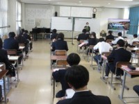 総合的な学習の時間に体育館で学年全員で合唱曲を聴きました。12月の合唱コンクールに向けて、学級で相談して歌う曲を決めて、ピアノ伴奏者は夏休みに練習に取りかかります。1年生は初めての合唱コンクールでみんなはりきっています。
