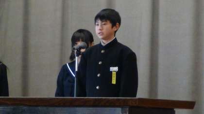 3年生は瀧塚公太郎さんが代表で,自分に厳しく,時間を大切にしていくことなどを話しました。