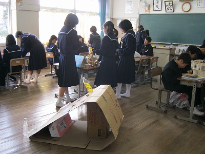 1月24日の半田養護学校との交流が近づいて来ました。ふれあい交流のゲーム作りの準備が着々と進んでいます。当日は体育館でにぎやかに楽しんでもらえるよう製作に励んでいます。