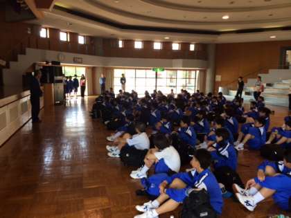 宿泊体験学習の1日目(5月1日)に行われた入所式と学年研修会の様子です。