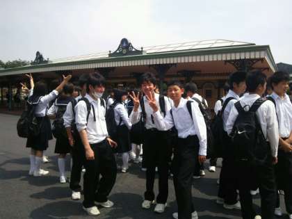 修学旅行1日目(国会・TDL)の様子です! 公開日 2014/05/20 更新日 2014/05/20 3年生より 東京に到着後、国家議事堂に向かいました。衆議院の本会議場などを見学後、建物をバックに記念撮影をしました。その後、地下鉄などを使って、TDLへ行きました。 今は、各グループいろいろなアトラクションを利用して楽しんでいます。 気持ちはみんなミッキーマウスのようにウキウキです。 みんな元気です!! いいね(0)