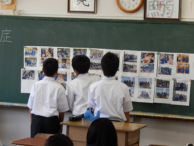写真は自主学習と行事の振り返りに使う写真を選んでいる様子です。