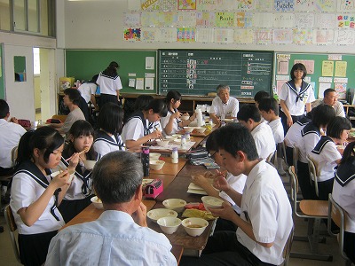 7月4日(金)に保護司さんとの交流会を行いました。保護司の仕事や薬物についてのお話を聞きました。その後、各クラスで保護司の方と給食を一緒に食べました。短い時間でしたが、非行や犯罪を犯さないようにすることを改めて感じることができました。