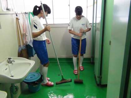 8月23日は出校日でした。校内の草や木を保護者の方が刈ってくださり,それを運ぶ作業を行ったり,日頃使用しているトイレの清掃をしたり,学校にお礼の意味を込めて活動しました。