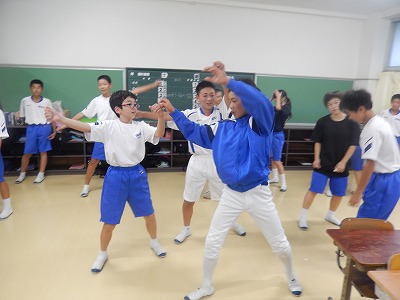今週から、授業後に学級の時間として体育祭へ向けた練習が始まりました。1年生は、応援の練習を行いました。応援団が夏休みに考えてくれた踊りを、学級全員で一生懸命に練習する姿が見られました。本番の応援合戦がとても楽しみです。初めての体育祭ですがベストを尽くして素晴らしいものにしましょう。