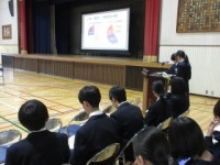 生活委員会によるあいさつ運動が行われました。10分程度の活動ですが、継続してがんばっています。生活委員の人たちも大きな声であいさつするのに慣れてきました。