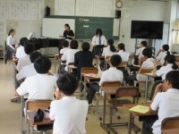 1年生では、総合的な学習の時間に福祉に関わる講演会を受講しました。市役所の方1名と訪問看護ステーションきずなの方々2名に来ていただき、講演を行っていただきました。「自助」「互助」「共助」「公助」についての話を聞いているとき、初めて聞いた言葉もあり生徒たちは真剣な表情で聞いていました。また、「地域包括ケアシステムの一員として、今、これから自分にできることは何でしょう」という問いに対して、一生懸命考えプリントに記入しました。そして、多くの生徒たちが発表することができました。大変貴重な学びになったと思います。