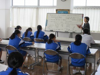 将来、教職を目指す大学生が学校体験活動に来校しています。授業の参観や補助をしたり、生徒と一緒に給食を食べたりしています。