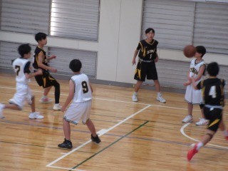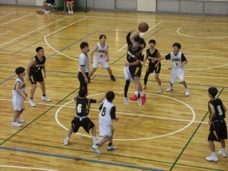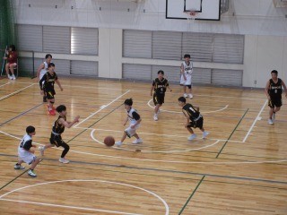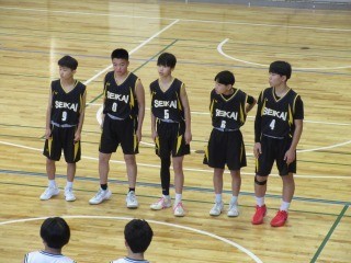 バスケットボール男子の試合が東海市体育館で行われました。大府南中と対戦し、中盤からしだいに得点差を広げ、48-35で勝ちました。