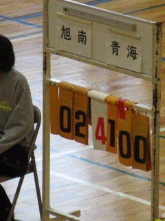 第3シードの阿久比中学校と対戦しました。粘り強く食い下がり、8本差ぐらいで試合が進み、接戦でしたが、終盤はなかなか得点に結びつかず、残念ながら敗退しました。素早い動きとパスでよくチャンスをものにしました。かなり高度なシュートも決めていました。よくがんばりました。青海中生の応援も多数かけつけていました。