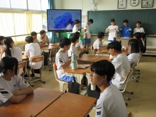 授業後に臨時の生徒議会が開催されました。前期生徒会執行部が取り組みたいと考えていた「コミュニケーションタイム」について、提案がありました。新しい取組なので、議会に参加したみんなで活動を試しに行ってみて、検討をしていたようです。
