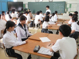 教育委員会の皆様などたくさんのご来賓に、本校の授業の様子や子どもたちの様子、教育環境等をご覧いただきました。個別最適な学びと協働的な学びの一体的な充実を踏まえて、青海中生と教師とで創り出す授業の様子や、青海中生の真剣な取組、気持ちのよいあいさつ、整った教室環境など、たくさんお褒めいただきました。ありがとうございました。午後は授業づくりについて、全教員で研究協議をしたり、教育委員会の方々よりご助言をいただいたりしました。青海中生のことや子どものために一生懸命に取り組む青海中の教員のことを褒めていただき、うれしい限りです。