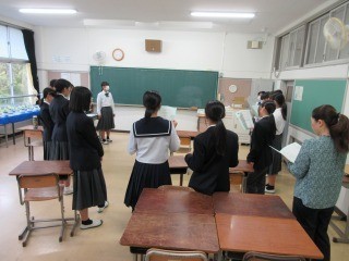 朝会で、水泳大会の表彰と後期生徒会役員の任命が行われました。後期の役員のみなさんは前期からのバトンを引き継ぎ、がんばっていきましょう。校長講話では、この土日に行われた大野古今散策の準備会と海岸清掃のボランティアについて労いの言葉がありました。地域のために汗を流すボランティア活動のすばらしさについて話がありました。また、まもなく開催される体育祭について、参加する人も参観してくださる方も共に、感動を味わえるものにしようという話がありました。ダンス発表で何を伝えるかを考えてほしいという話もありました。