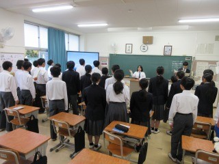 朝会では、バスケットボール大会や水泳大会の表彰が多数ありました。活躍している生徒が多いです。校長講話では、世界陸上2025の選手の様子や普段の青海中生の様子に関連して、言葉のかけ方の大切さについて話がありました。よいコミュニケーションのためには、よい言葉のかけ方が大切で、たった一言でもプラスのいい言葉かけをすることがいいチームを作ったり、いい学級、いい学年を創るという話がありました。