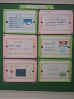 E組では、国語の時間に百人一首の学習をしました。教員が上の句を読み、子どもたちが下の句を思い出したり、読んだりしてカルタを取っていました。楽しく学習しています。