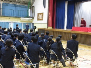 校長講話では、学校アンケートの結果を踏まえて、「無言清掃」に真剣に取り組むことの大切さの話がありました。清掃は環境を整えるとともに、心を整えることだという話がありました。