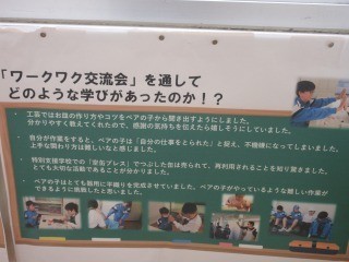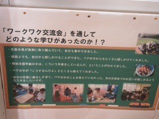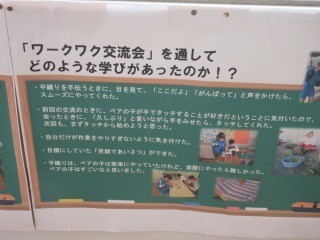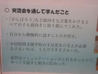 1年生の廊下には、半田特別支援学校との交流会で学んだことを、総合的な学習の時間にまとめて、学年廊下に掲示しています。1学期の「出会いの交流会」や2学期の「ワークワク交流会」を通じて、共生、ウェルビーイングなどについて、体験を伴う学習をしてきました。3学期には、半田特別支援学校の子どもたちを青海中に招待する「ふれあい交流会」を予定しています。