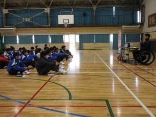 2/5(木)1年生では、総合的な学習の時間に、福祉についての学習会として「あすチャレ!ジュニアアカデミー」(主催:日本財団パラスポーツサポートセンター)を行いました。講師は、リオ2016パラリンピックにパワーリフティング54㎏級代表として出場した西崎哲男様でした。講師の方のこれまでの生き方や競技に取り組む様子をご紹介くださいました。その後は、講師の方と一緒に遊ぶためのゲームを班ごとに考え、体験し、どこがよかったかとか、どんな課題があるかなどを考え合いました。子どもたちは夢中になって取り組みました。講師の方の、「できるか、できないかを考えるよりも、どうやってできるようにするかが大切」という言葉が心に響きました。ご多用の中、わざわざ遠方より、青海中まで来てくださり、ありがとうございました。