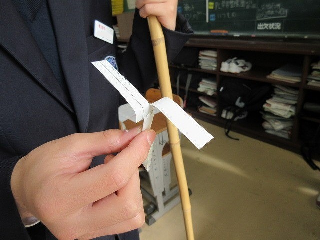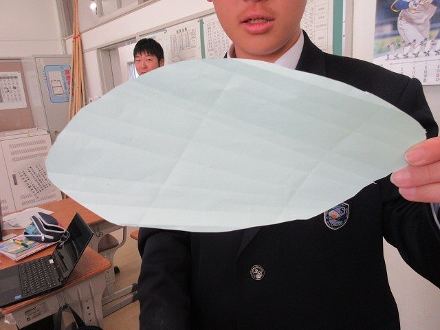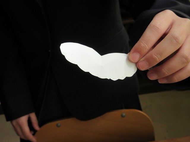 1年生の数学の授業では、「データの活用」の単元を行っています。その中で、「長い時間滞空できる紙の形を見つけ出そう」という学習課題を提示し、学習を進めさせました。生徒たちは、明確な正解がない中で、試行錯誤しながら、よりよい方法を導き出そうと探究していました。生徒たちが、夢中になって取り組んでいた姿が、とても素敵でした。