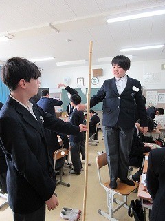 2/5(木)1年生では、総合的な学習の時間に、福祉についての学習会として「あすチャレ!ジュニアアカデミー」(主催:日本財団パラスポーツサポートセンター)を行いました。講師は、リオ2016パラリンピックにパワーリフティング54㎏級代表として出場した西崎哲男様でした。講師の方のこれまでの生き方や競技に取り組む様子をご紹介くださいました。その後は、講師の方と一緒に遊ぶためのゲームを班ごとに考え、体験し、どこがよかったかとか、どんな課題があるかなどを考え合いました。子どもたちは夢中になって取り組みました。講師の方の、「できるか、できないかを考えるよりも、どうやってできるようにするかが大切」という言葉が心に響きました。ご多用の中、わざわざ遠方より、青海中まで来てくださり、ありがとうございました。