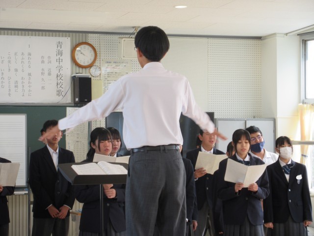 2年生の音楽の授業では、市の音楽家派遣事業で、知多地域で活躍されるプロのオペラ歌手を講師に招き、合唱指導をしていただきました。楽しい練習の中で、発声の仕方等を学び、みるみる合唱が上達していくのが感じられました。近藤先生ありがとうございました。最後は、指揮者の生徒が代表してお礼のあいさつをしました。