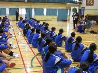 本日、マレーシアの学校に携わられていた山本様による講演が開かれました。マレーシアクイズを行う中で、生徒たちはマレーシアのことを学んでいきました。マレーシアは、マレー系69%、中華系23%、インド系7%、少数民族1%の多民族国家です。多民族国家ということで、さまざまな料理が食べられたり、豊かな文化を経験したりできるそうです。また、マレーシアの学校は、日本の学校とさまざまな点で異なっていることを知り、生徒たちは驚きの声をあげていました。最後に、お礼の言葉を伝えるとともに、マレーシアの生徒からの手紙を代表者が受け取りました。生徒たちは、大変嬉しそうでした。