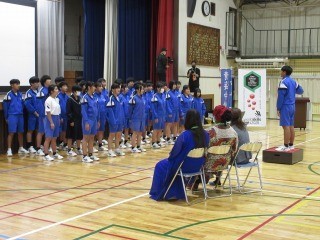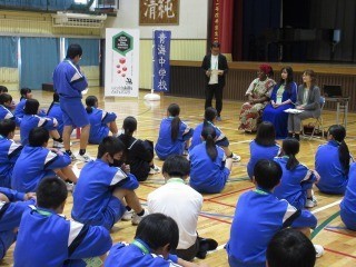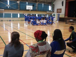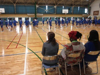 2年生は、モロッコとナイジェリアの留学生の方を歓迎して、合唱やダンスを披露しました。心のこもった歓迎に、留学生の方々は喜んでいました。青海中の代表生徒は、堂々と英語で歓迎の言葉を述べました。さすがです。