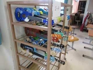 2年生では、美術の授業でデザインした「マイウクレレ」を使って、音楽の授業で演奏練習も行う予定です。美術と音楽と連携した横断的な学習を展開しています。