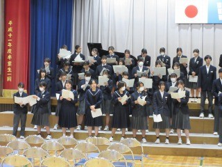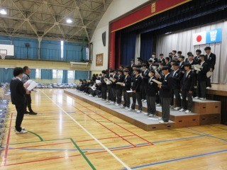 3年生を送る会に向けて、2年生、1年生が準備をしています。2年生では、体育館で学年合唱の練習をしました。3年生に思いが伝わる、心温まる行事にできるとよいですね。