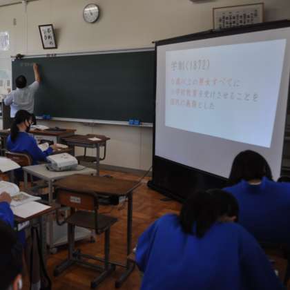 そして、急な時間割変更で“お気に入り”の電子黒板が使えず、スクリーンを設置して授業に臨みました。