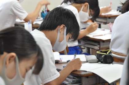 Ma+Mb=M(a+b)という考え方について確認し、因数分解を利用して方程式を解いています。