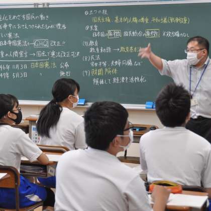 「歴史」の授業で、日本国憲法の成立について学習しています。