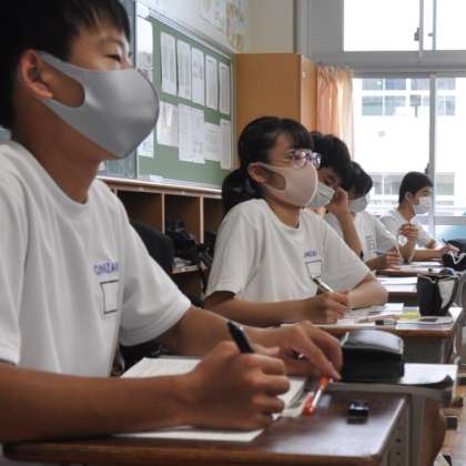 S先生の話を聞く姿勢のよい生徒ばかりです。
