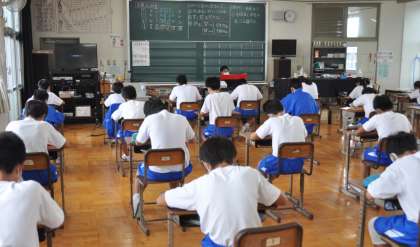 和音等についてI先生の説明を聞き、実際にピアノの音を聴いて五線譜に音階を書いています。