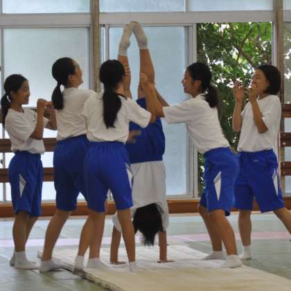 男子も女子も協力し合って、次々に技にチャレンジしています。