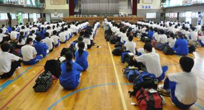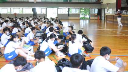 体育館での学年集会です。