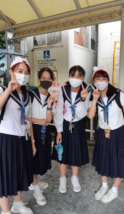 目ざとく並ぶ“富士急ハイランド満喫組”の生徒たちです。