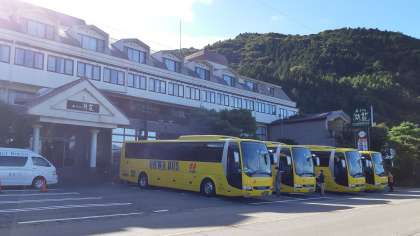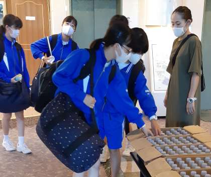1人1本ペットボトルの水をもらってバスに乗ります。