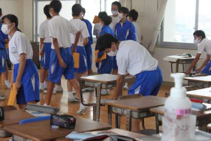 今日は合唱ができなくなり、机いすを元の位置に戻しました。