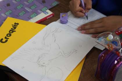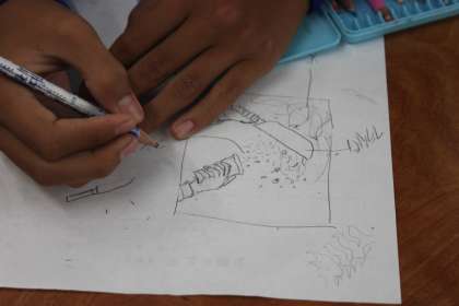 教師のアドバイスを聞きながら、下絵を作成していました。