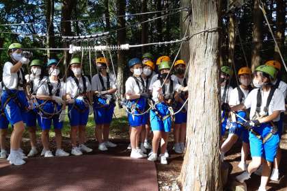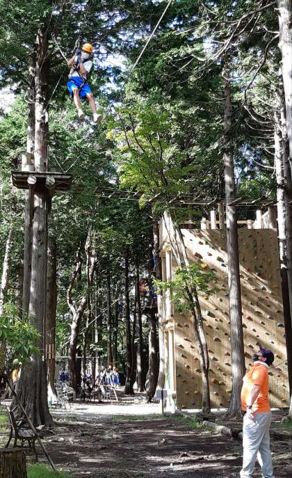 「スカイアドベンチャー」は、森の中に張られたロープを使って、杉の木々を様々な方法で渡っていきます。